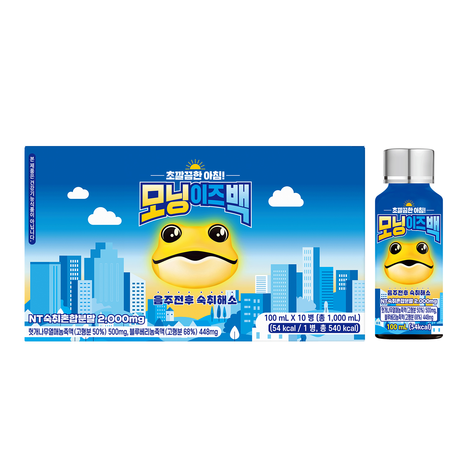 브랜드퍼블리싱 2025 I 모닝이즈백 액상형태제품 100년 전통의 주류전문가 하이트진로와 협업하여 개발한 숙취해소 전문 브랜드 달콤한 블루베리 맛과 빠른 효과로 숙취해소 시험성적 인증된 드링크 제품 Work Flow : 기획, R&D, 원료수급, 패키지디자인검수, 제조관리