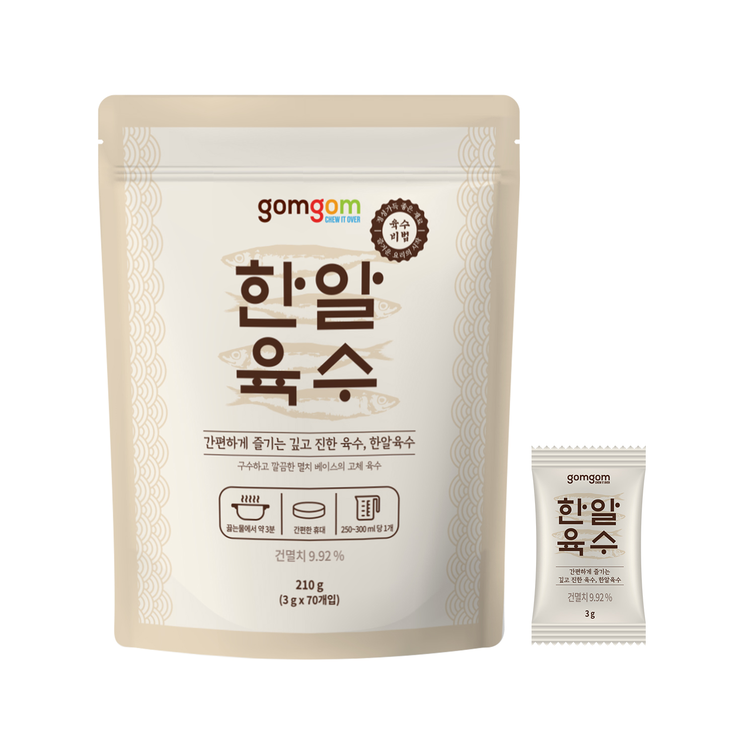 브랜드퍼블리싱 2024 I 곰곰 한알육수 3g x 70정 타정형태제품 간편하게 한 알, 끓는 물에 3분! 진하게 우러나는 국내산 멸치의 깊고 시원한 풍미! 곰곰 한알육수로 완성하는 간편하고 맛있는 요리! Work Flow : 기획, R&D, 원료수급, 패키지디자인검수, 제조관리