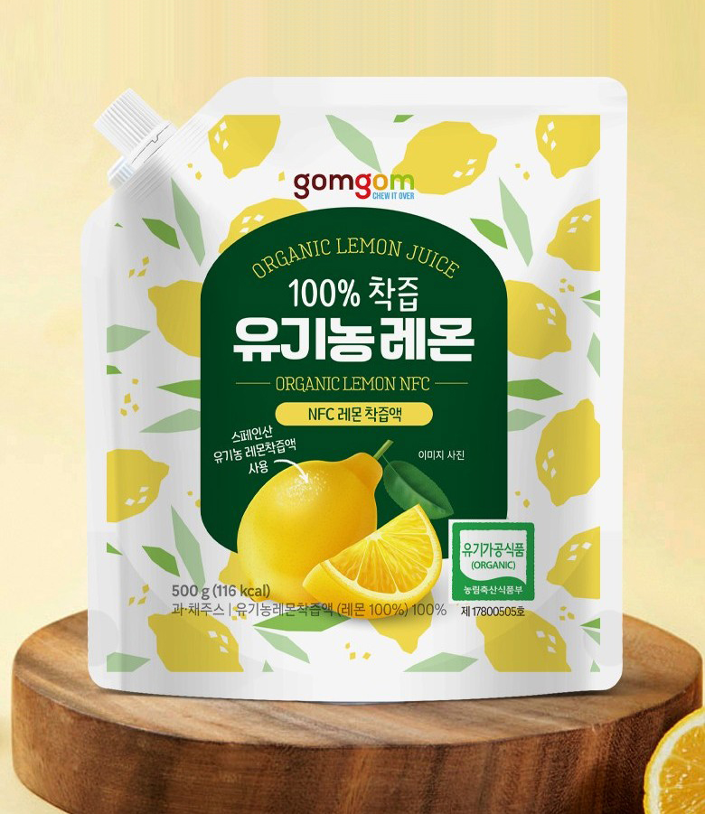 브랜드퍼블리싱 2025 I 곰곰 100% 착즙 유기농 레몬 대용량 액상형태제품 혈당관리와 디톡스에 좋은 스페인산 레몬을 껍질 그대로 착즙한 100% 유기농 NFC 레몬즙을 휴대와 섭취가 간편한 액상 스틱에 담아낸 제품 Work Flow : 기획, R&D, 원료수급, 패키지디자인검수, 제조관리