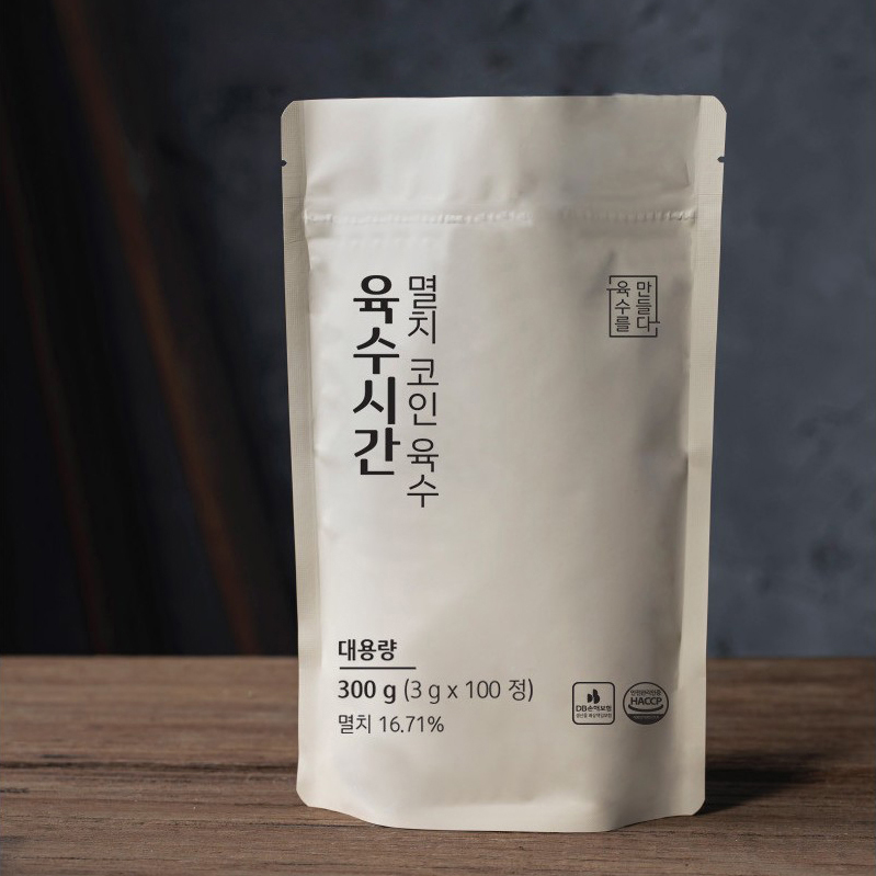 브랜드퍼블리싱 2022 I 육수시간 멸치 코인 육수 대용량 타정형태제품 멸치, 다시마, 대파, 마늘, 황태 다섯 가지 기본 재료는 동결건조 + 저온 공법으로 만들어 재료의 깊은 맛을 끌어냈습니다. Work Flow : 기획, R&D, 원료수급, 패키지디자인, 패키지디자인 검수, 제조관리, 3PL, 마케팅, 판매